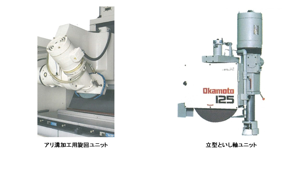 ・オーダーメイド仕様では、長く培われた経験から『高能率加工』・『といし軸旋回仕様』『機上測定/補正加工』・『マクロプログラムによる変数入力』のコンビネーションで、豊富なアプリケーションに対応します。