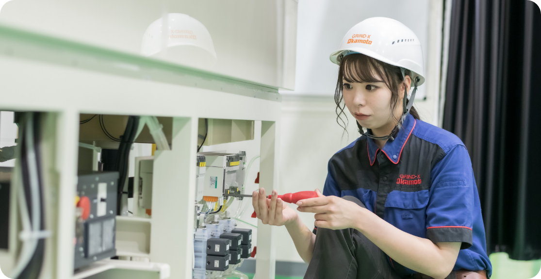 岡本工作機械製作所はものづくりが好きな方や興味がある方にはとてもやりがいのある職場です。最初は分からない事だらけで不安だと思います。私も最初はとても不安でしたが、先輩たちの仕事に対する姿勢や熱意ある姿を見て、大切なのは『作業に対する熱意だ!』と、感じました。誰でも最初は初心者で、失敗した時こそ自分自身が成長できる時だと思います。失敗を恐れずに色んなことにチャレンジし新しい挑戦を楽しんで共に世界に通用する素晴らしい装置を作り、成長して行きましょう!我々が全力でサポートします!